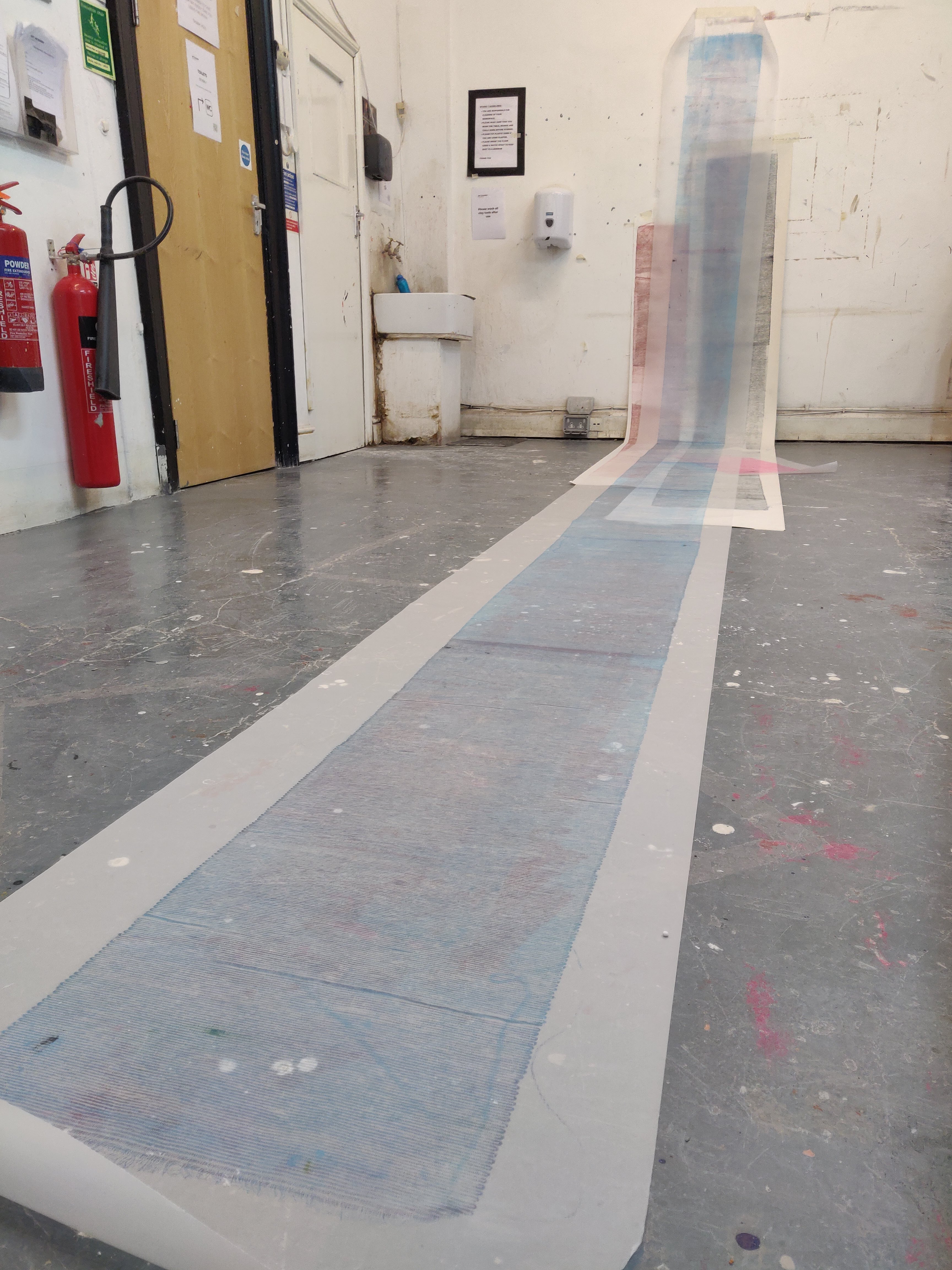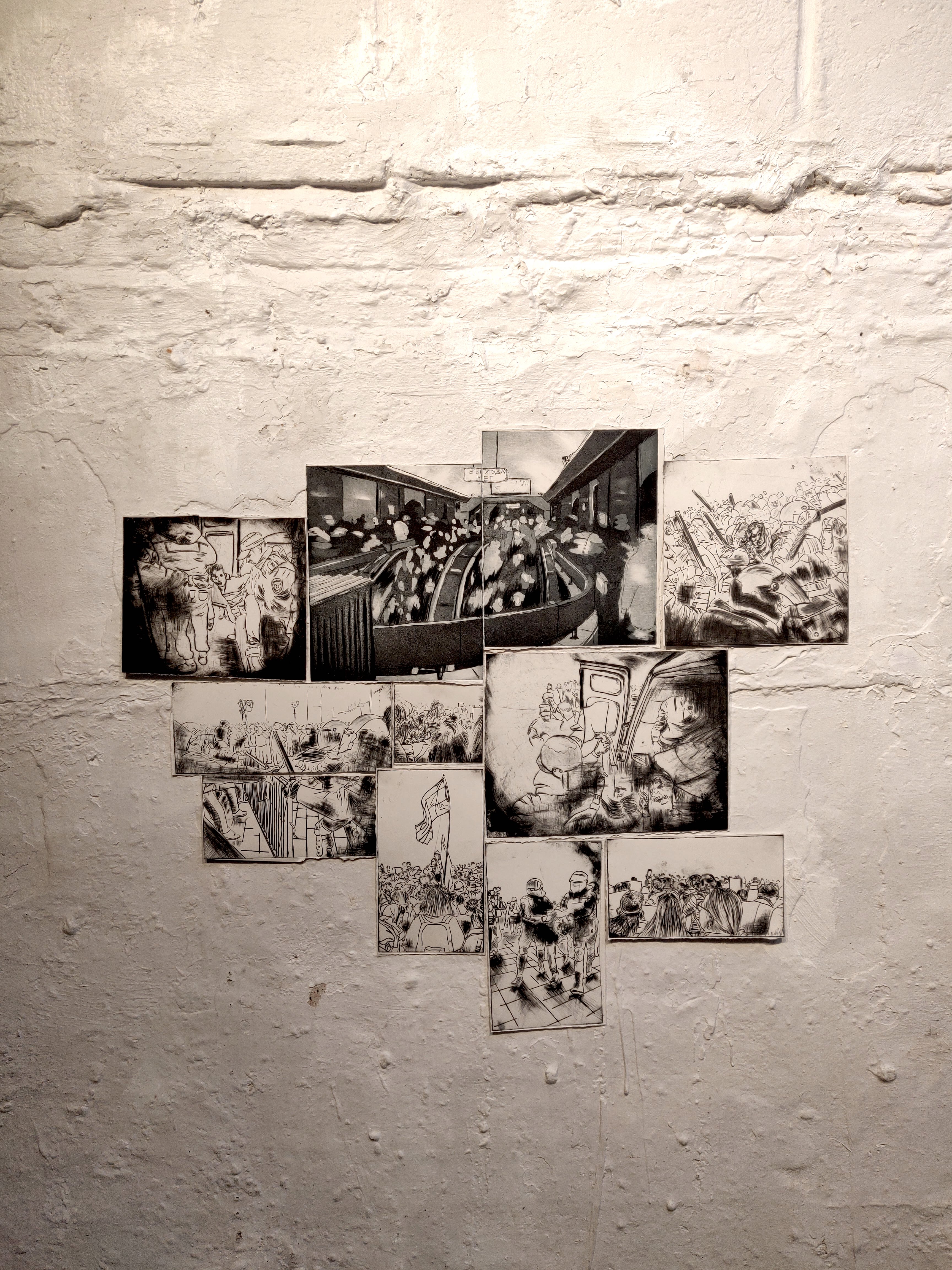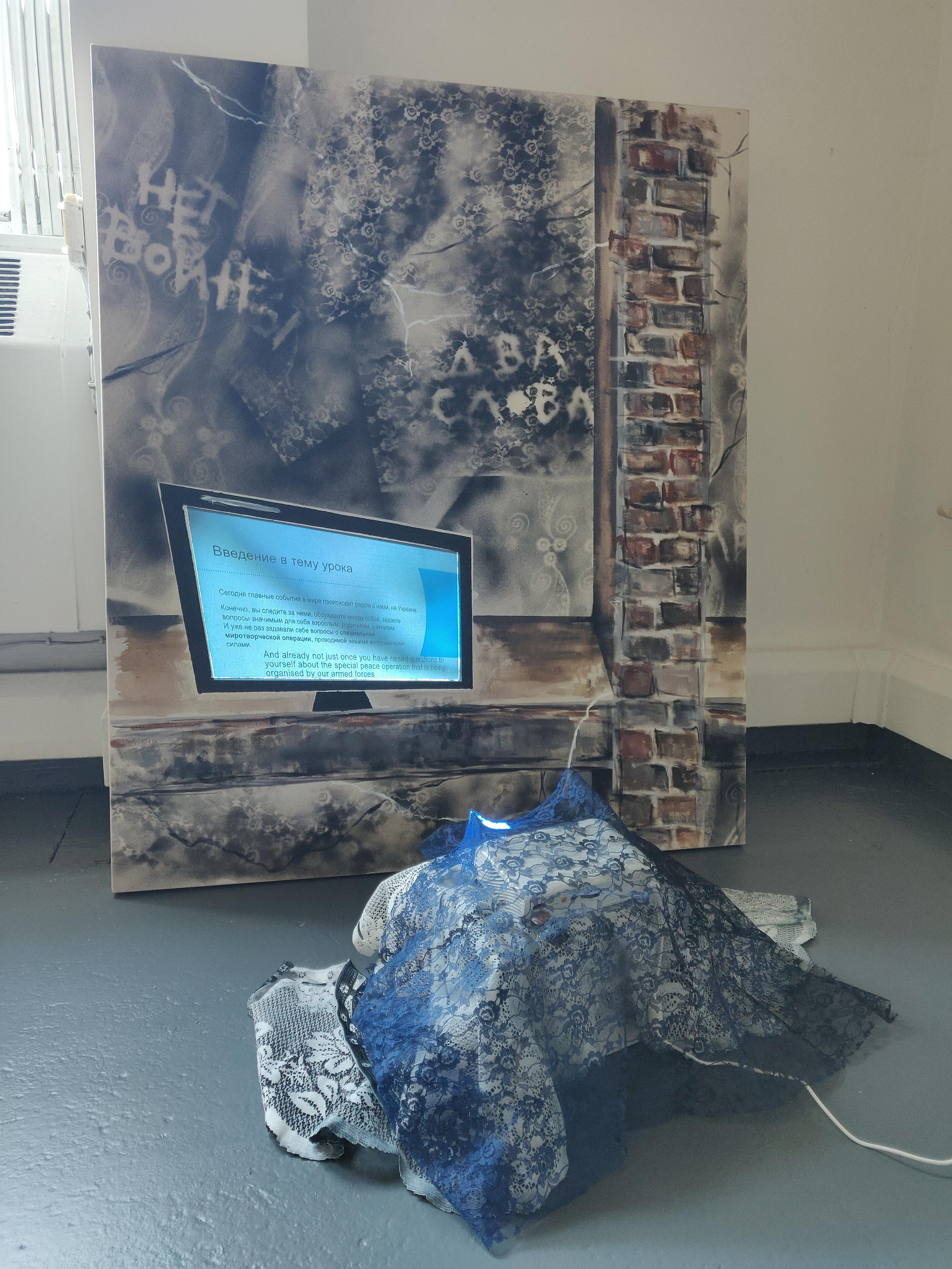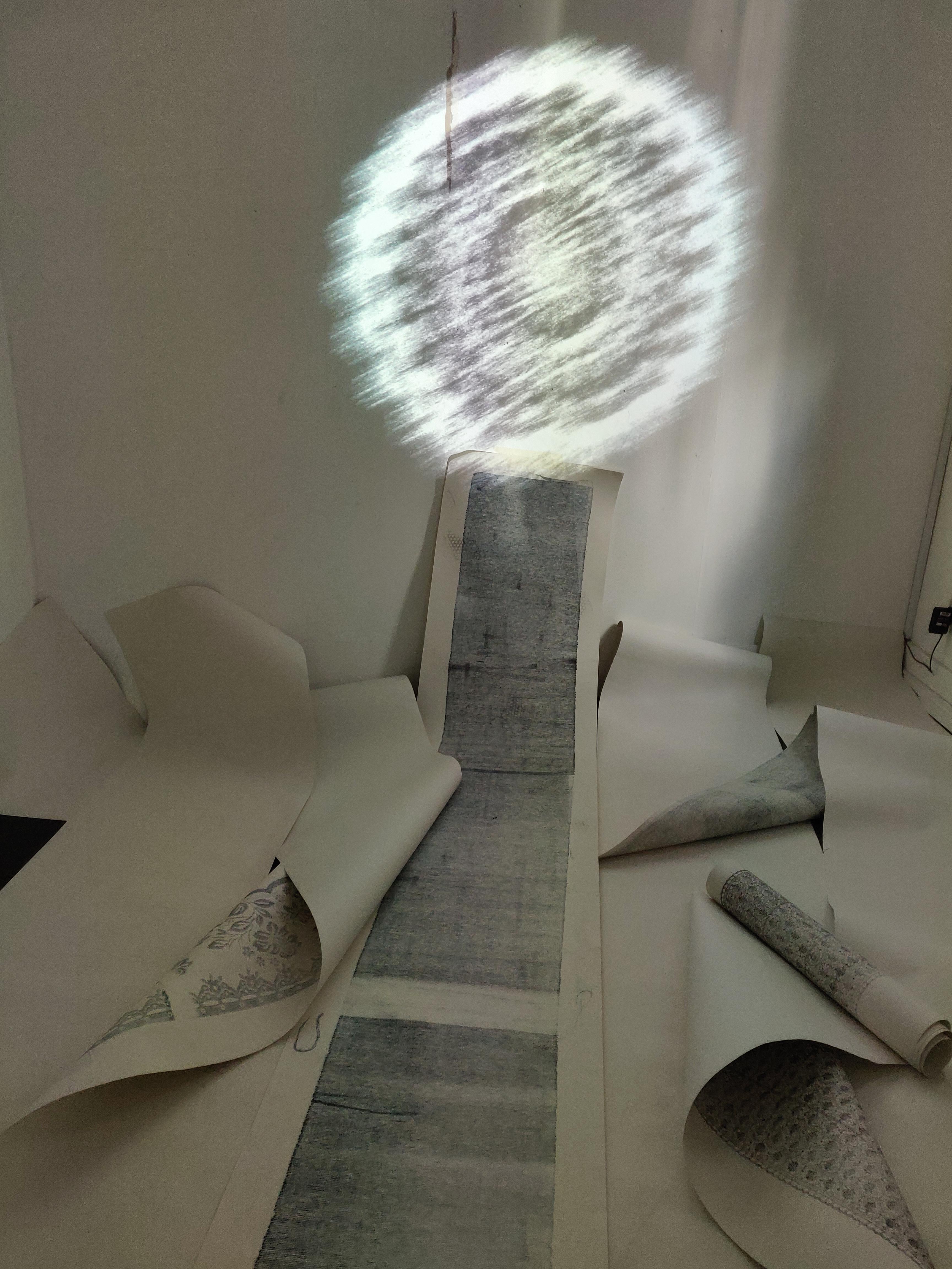 Through my mixed media installation, I like to create spaces for the audience to step into and interact with. The spaces mix elements of the private and public, resulting in an uncanny experience that creates a starting point for discussions and reflections. My installations take on elements of my other work, including printmaking and mixed media paintings, as well as interactive performances.